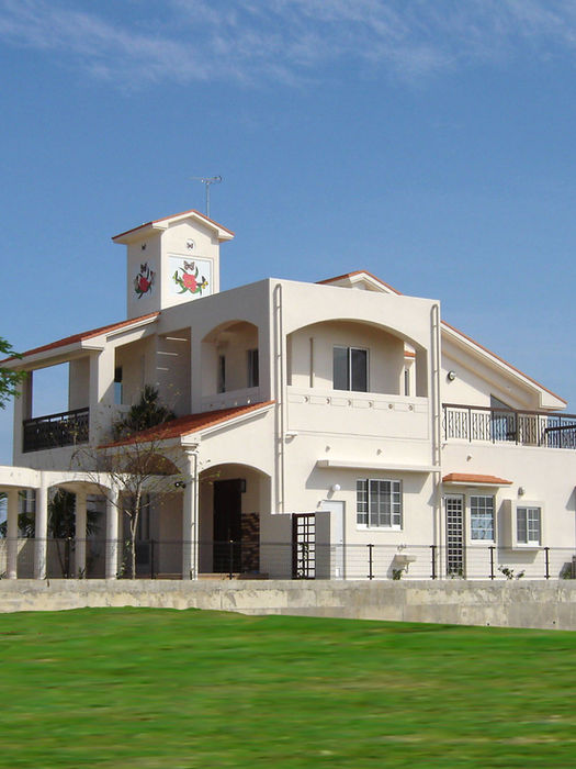 南国を感じる庭と、優雅な瓦屋根の邸宅です。