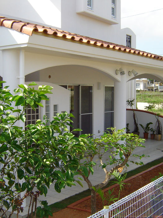 塔屋とアーチが特徴の、開放的な南欧風二世帯住宅。