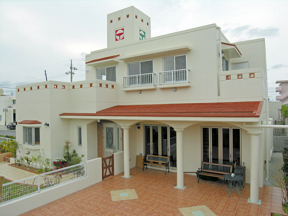 塔屋とアーチが特徴の、開放的な南欧風二世帯住宅。